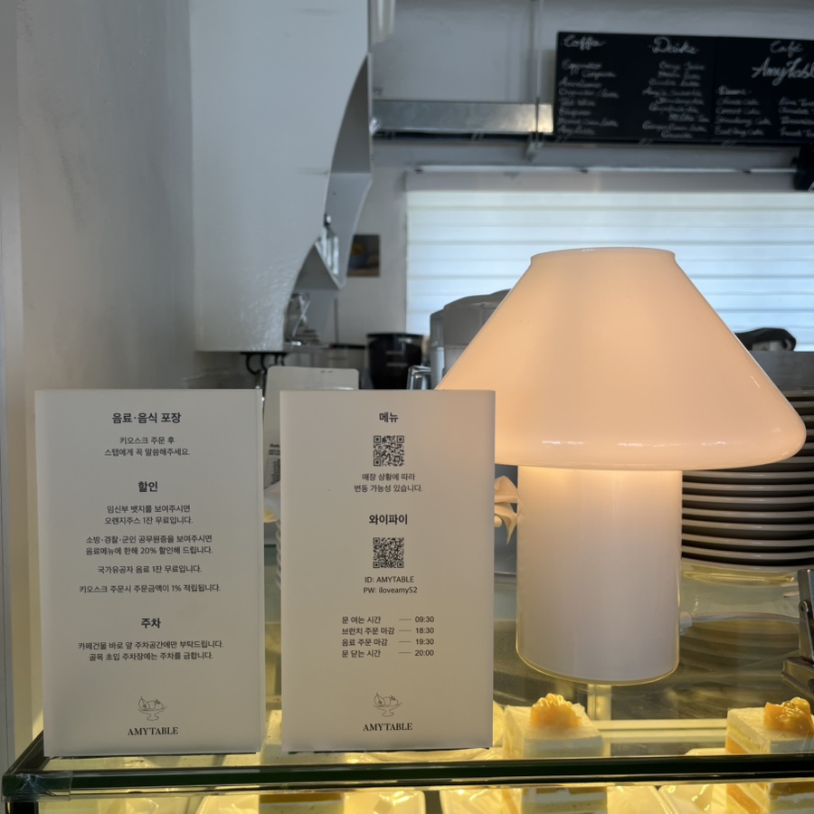 에이미테이블은 브런치카페와 리빙소품샵을 같이 운영하는 곳이에요. 1층에서는 예쁜 그릇과 주방 용품 그리고 귀여운 소품들을 구매하실 수 있고, 2층에서는 남한강 뷰를 보며 맛있는 브런치와 디저트를 즐기실 수 있답니다 ☻