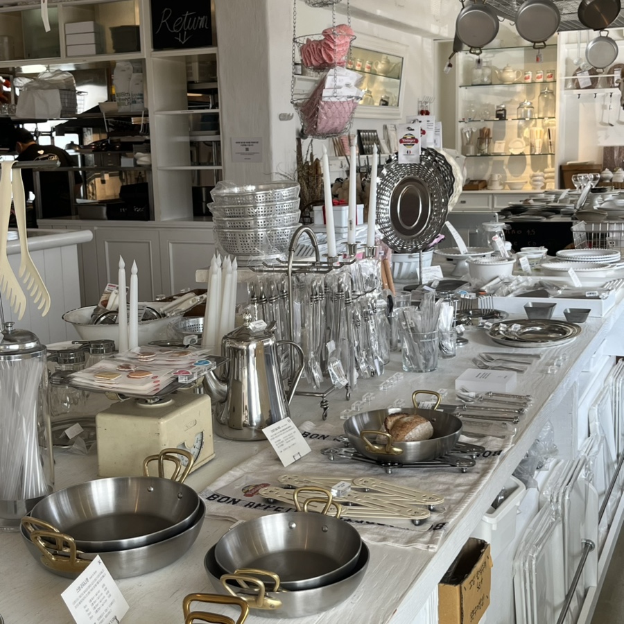 체반, 집게, 테이블보, 행주 등 수십 가지의 주방용품부터 예쁜 그릇과 컵, 커트러리까지 없는 게 없었어요. 종류가 많은데도 불구하고 겹치는 스타일 없어서 보는 재미가 컸고, 리빙용품에 관심이 많은 편이 아닌데도 시간 가는 줄 모르고 구경했어요.