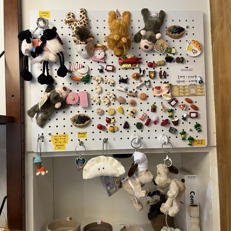 동물 인형 자석, 마그넷, 피규어, 알록달록한 초 등 귀여운 템들 투성이었는데 보기만 해도 힐링되고 기분이 좋아졌어요.