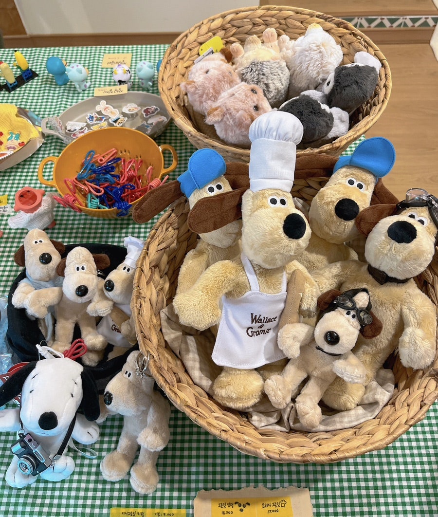 요즘 유행하는 키링이 오렌지블루그린에도 많이 있었어요. 그로밋, 스누피, 야채, 토끼 등 사진 찍은 것 외에도 곳곳에 비치되어 있었어요. 그로밋, 쿼카, 고슴도치, 펭귄 인형도 있는데 쿼카가 마음에 들어서 살까 말까 고민하다 생각보다 비싸서 내려놓았어요.