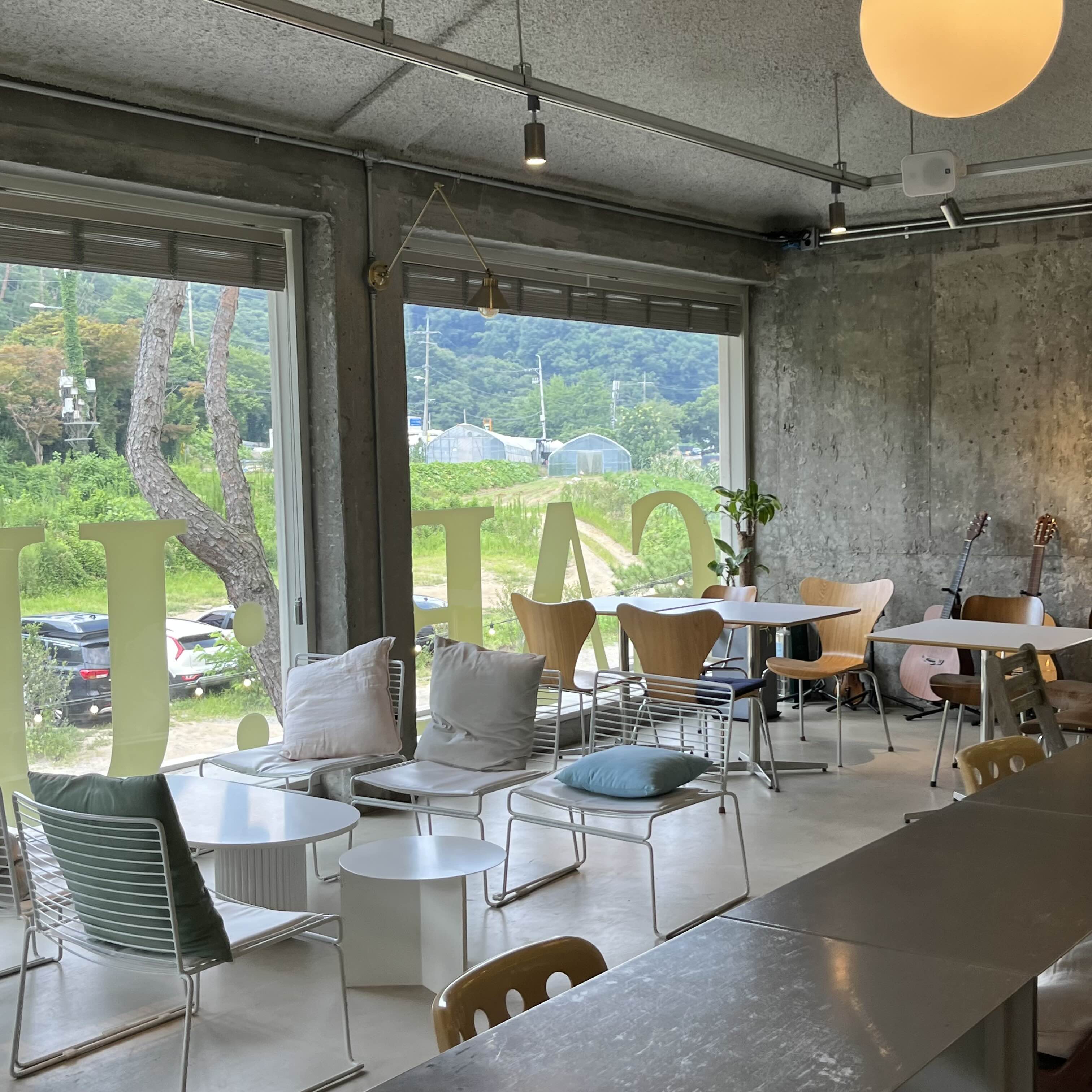 1층이나 2층 모두 통창이라 산뷰와 계곡뷰를 한 번에 볼 수 있어 좋았어요. 근데 손님이 많아서 그런가 매장이 시원하진 않았어요.