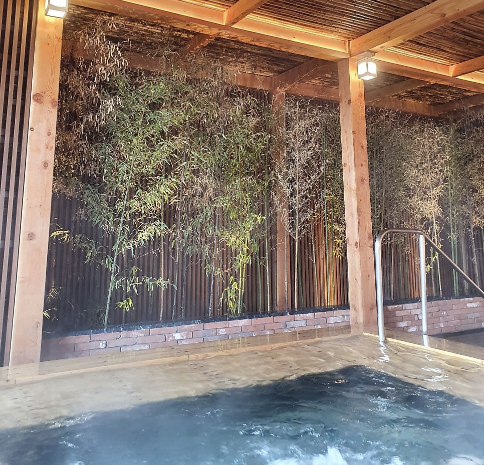 실외 노천탕 앞쪽으로 뻥 뚫린 바다도 있고, 나무도 울창하게 있어서 새소리도 들리고 힐링 제대로 했어요.