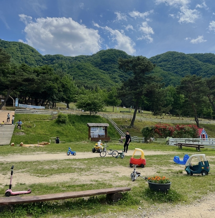 숲 놀이터도 개장했는데 제가 방문했을 땐 운영을 안 하고 있었어요. 운영 여부와 매표 문의는 매표소에 하시면 됩니다. 무료는 아니었고 대인 천 원, 소인 오천 원 정도 했어요.