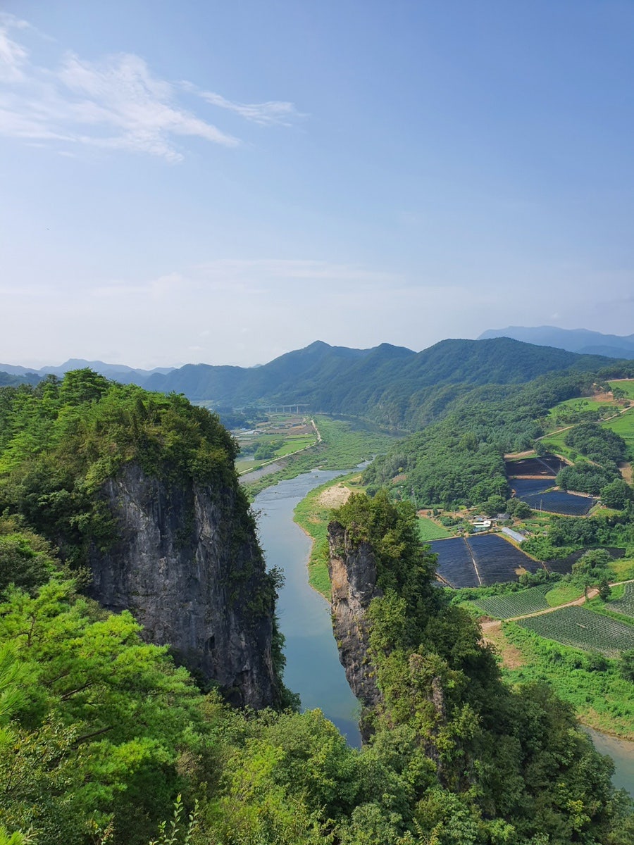 쪼개진 절벽 사이로 흐르는 강과 뻥 뚫린 풍경을 바라보는 것만으로도 가슴이 시원해졌어요. 선돌 또한 산책로가 잘 되어있어서 힐링하며 걷기 좋았어요.