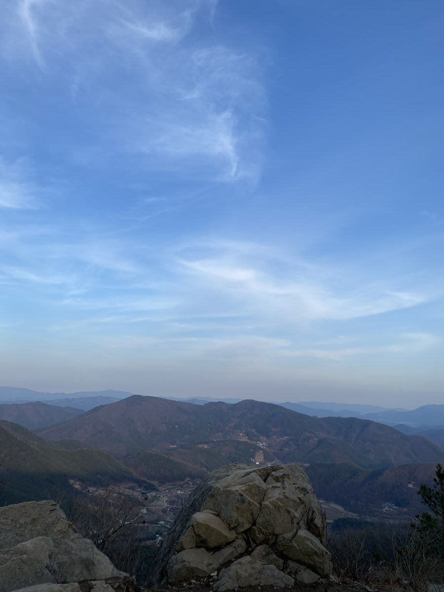 인기 포토존으로 꼽히는 명상 바위에서 인생샷 담아 가세요. 바위 아래로 보이는 마을과 산자락 그리고 하늘이 한 샷에 담기는데 그림같이 아름답습니다. 마음 같아선 조용하게 명상까지 하고 싶었는데 기다리시는 분들이 많아 후다닥 찍고 나왔어요.