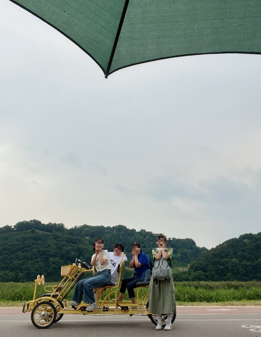 아쉽게도 저희가 방문했을 땐 꽃이 없어서 구경할 게 없었어요. 그래도 온 김에 뭐라도 하자 해서 자전거 빌리는 곳이 있길래 4인으로 빌려탔는데 너무 재밌게 타고 왔어요. 신분증만 있으면 무료로 빌릴 수 있었고, 자전거 도로가 잘 깔려있어서 신나게 탈 수 있었습니다.