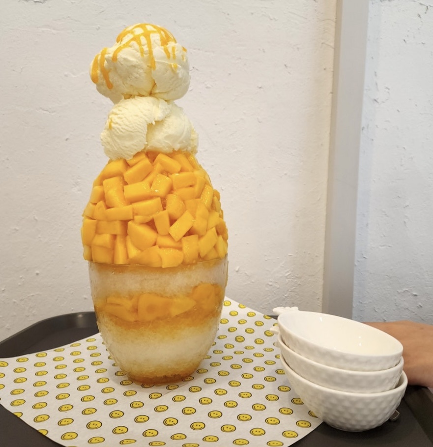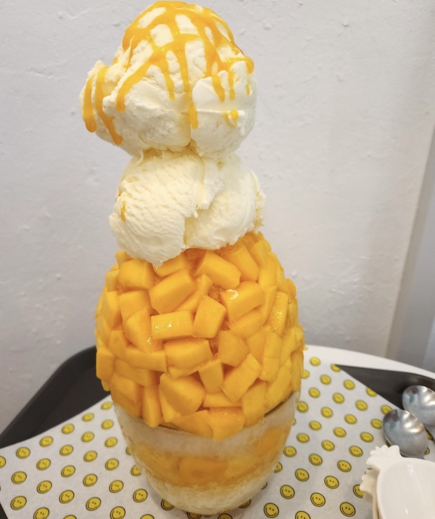 위에 올라간 바닐라 아이스크림도 사이즈가 주먹보다 커요. 싸구려 바닐라 아이스크림이 아닌 엑설런트 아이스크림 맛이었어요. 한번 떠먹으면 망고가 후두둑 떨어질 줄 알았는데 찰싹 붙어있어서 안 떨어뜨리고 깔끔하게 먹었어요.