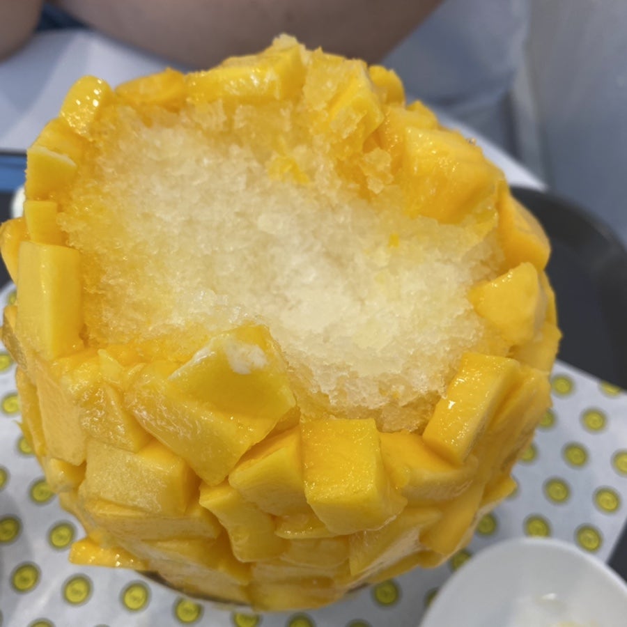 얼음은 우유 얼음이 아닌 잘게 갈린 얼음이었어요. 빙수는 우유 얼음이라고 생각했는데 이 망고 빙수에는 갈린 얼음이 더 잘 어울렸어요.