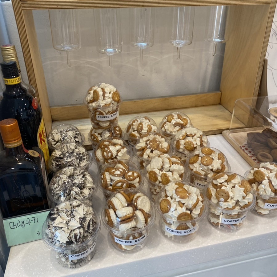 디저트는 머랭 쿠키와 커피콩 빵이 준비되어 있어요.