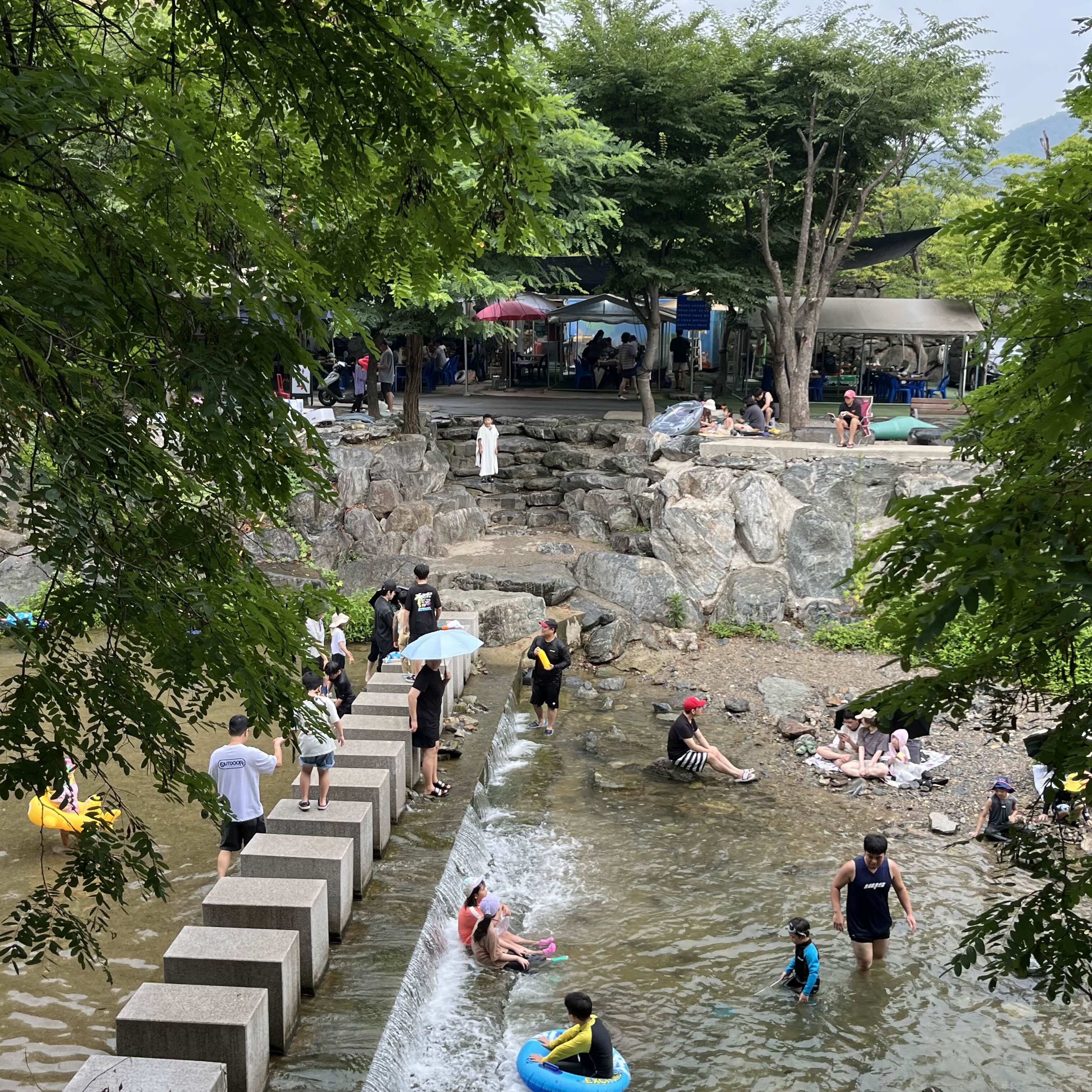 개인 테이블이랑 의자 챙겨가서 계곡에 앉아 있어도 아주 좋습니다. 수심 얕은 곳부터 깊은 곳까지 있어서 어린아이부터 성인까지 재밌게 놀 수 있었어요.