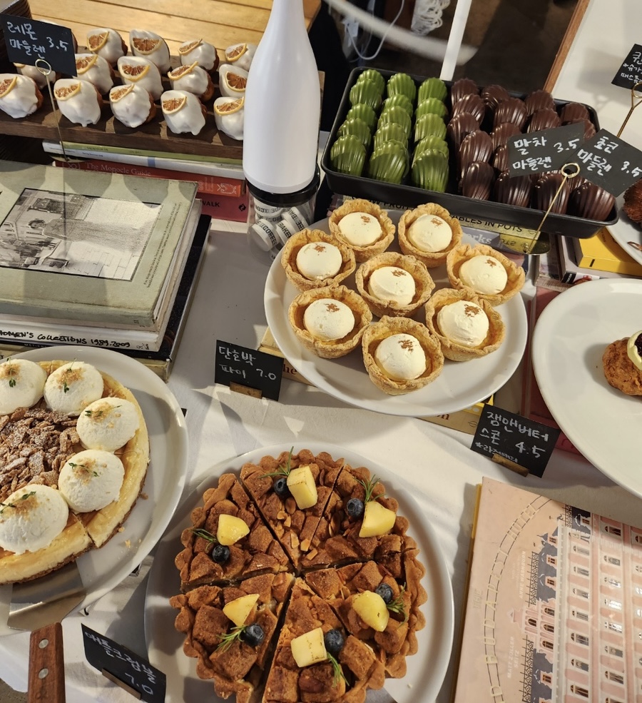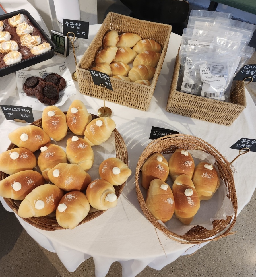 로와이드의 시그니처 메뉴인 소금빵은 종류가 다양했습니다. 아기자기한 소품들 덕분에 디저트 비주얼이 더 확 살아나는 거 같아요.