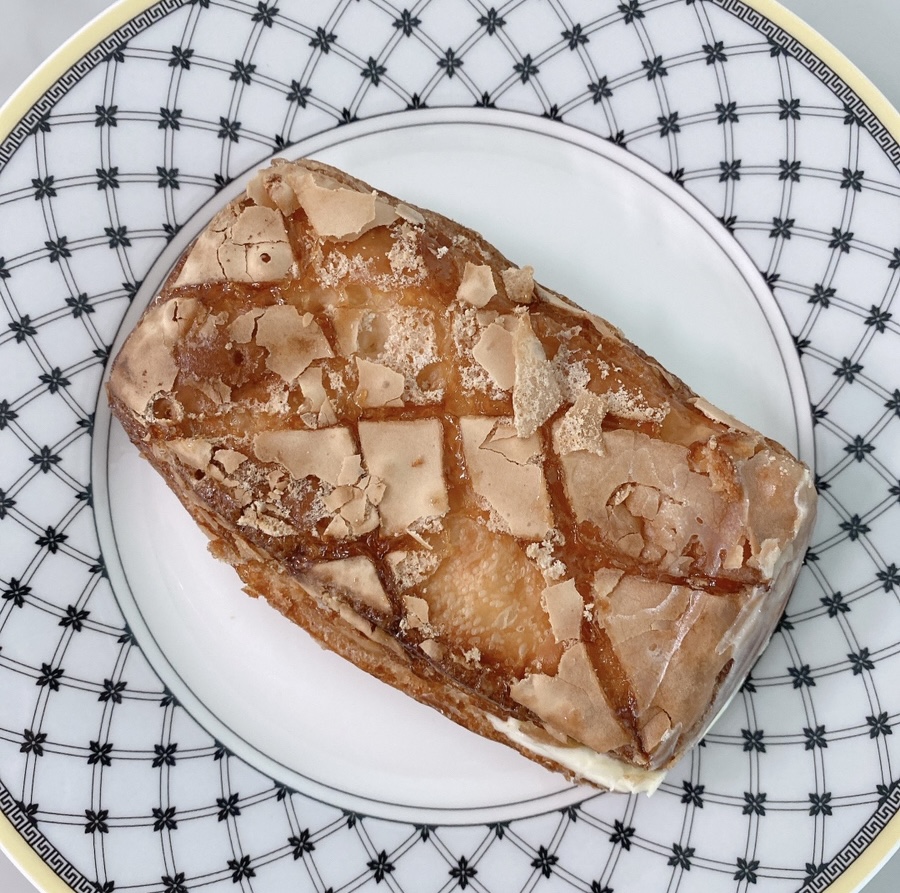 페스츄리 반죽 결 보이시나요. 달콤한 캐러멜 시럽이 코팅돼서 바삭바삭했어요. 버터 향도 느껴지면서 고급진 맛입니다.