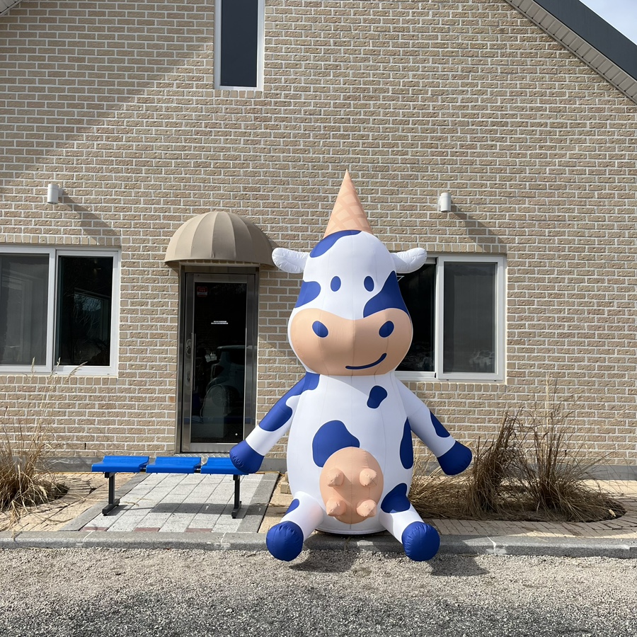 사르르목장의 캐릭터인 젖소가 너무 귀엽다고 생각했는데 마침 매장 밖에 젖소 풍선과 촬영할 수 있는 포토존이 마련되어 있었어요.
